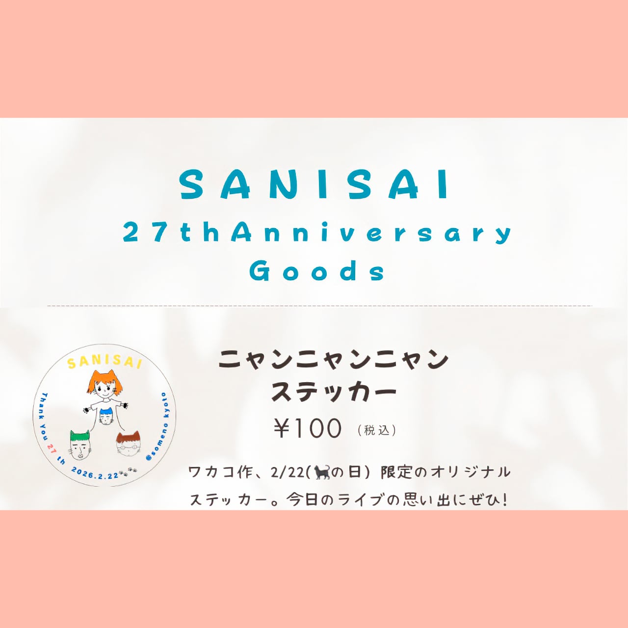 **SANISAI 27th Anniversary 2月22日ライブ限定のオリジナルステッカー**